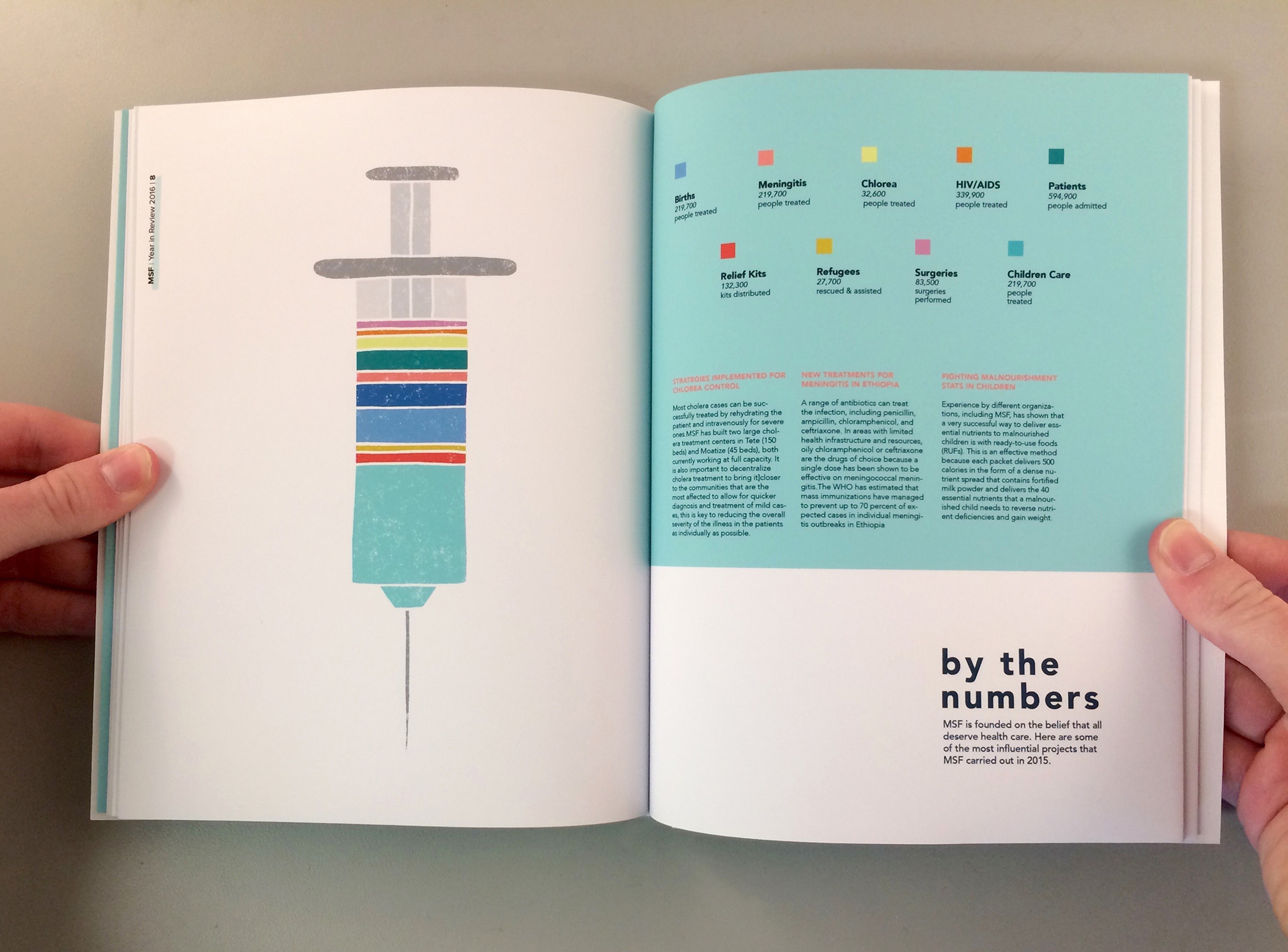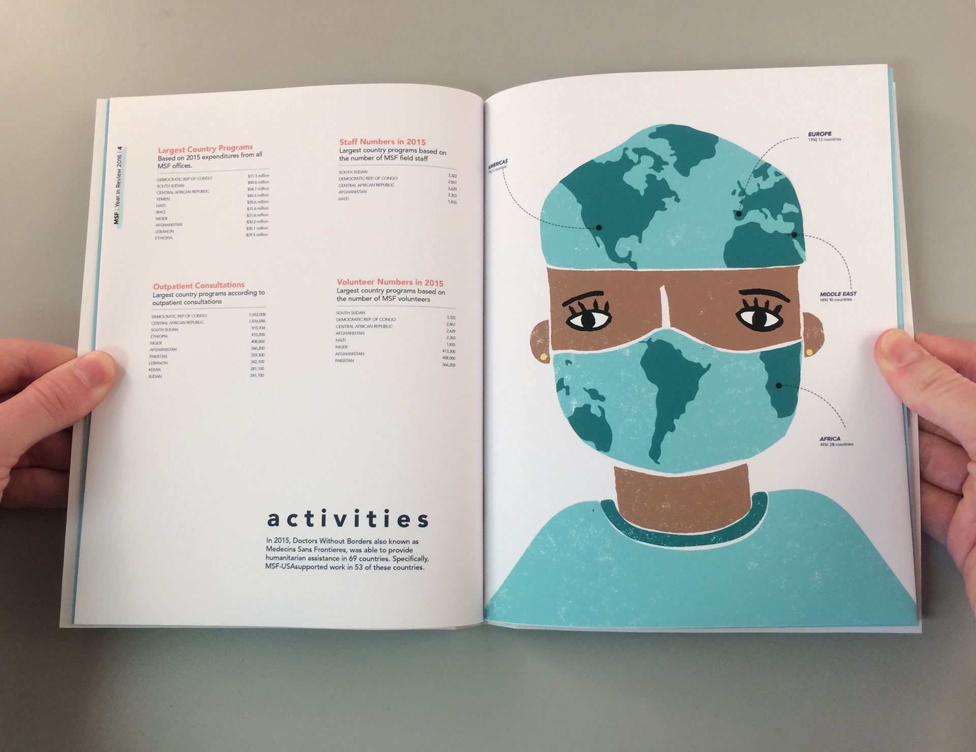 This brochure was a project assigned in my publication design class. My client was Doctors Without Borders, and I utilized illustration as a means to visualize data regarding the organization's activities and accomplishments during 2016.
