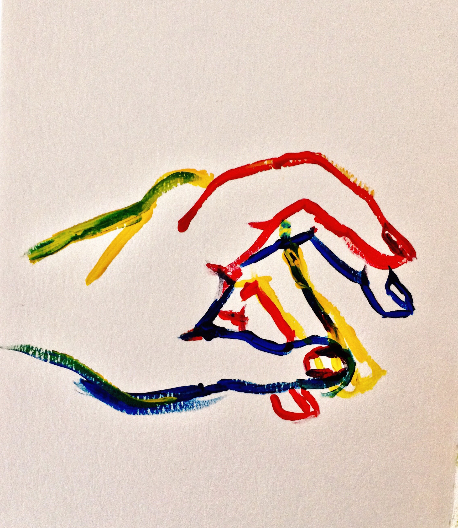 These pieces were loose portraits of friends that I had while in high school. I chose colors and patterns that reminded me of their personalities, and the sayings were inside jokes we had at the time.